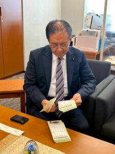 組合員の皆さんからいただいた「とどけようわたしたちの声」も水岡議員に渡しました