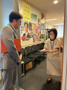 組合員の皆さんからいただいた「とどけようわたしたちの声」も水岡議員に渡しました